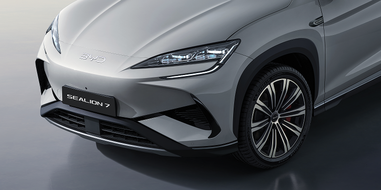 Фронтальная часть SEALION 7 с фирменным решением «OCEAN X» выделяется мощным X-образным силуэтом, который придаёт автомобилю внушительный облик